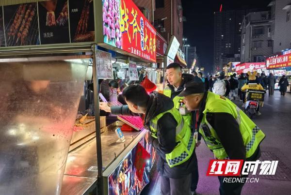 四方商贸城,街道和城管部门在巡查燃气安全。红网时刻新闻2月4日讯(记者 贺卫玲)2025年春节,长沙街头灯笼高挂,年味正浓。在扬帆夜市和四方商贸城两大"顶流"夜市,当市民游客沉浸在热气腾腾的年味中时,身着深蓝制服的城管队员穿梭于霓虹之间,用"春节我在岗"的坚守,护航着城市的"烟火"与"秩序"。正月初六的扬帆夜市同样人头攒动,各种闪亮的招牌下,围着休假团聚的消费者。相比平日里,市场管理方压缩了经营范围,以市场内街十字路口为中心点,南北东西双向沿街约百米左右为营业线,集中50多个在营摊位,持续着扬帆夜市的烟火气息。"请勿占道经营""垃圾请分类投放"——扬帆夜市入口的AI智能广播循环播放提示,作为长沙规模最大的夜市,却能做到"摊位齐整不越线、地面整洁无油渍"。"我们提前对各个摊位进行网格编号,实施'一摊一策'管理。"正在巡查的城管队员告诉记者,城管部门联合街道、市监等单位成立专班,采取"三班倒"巡查制度,保障夜市秩序和市容市貌。